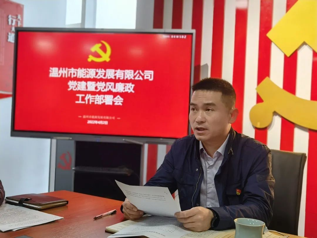 4月2日上午,能源公司召開(kāi)2022年度黨建暨黨風(fēng)廉政建設(shè)工作專題部署會(huì)。公司黨支部書(shū)記、董事長(zhǎng)、總經(jīng)理丁明利主持會(huì)議,公司全體干部職工參加會(huì)議,平陽(yáng)西灣風(fēng)電場(chǎng)、蒼南霞關(guān)風(fēng)電場(chǎng)運(yùn)行人員以“云會(huì)議”形式參加。